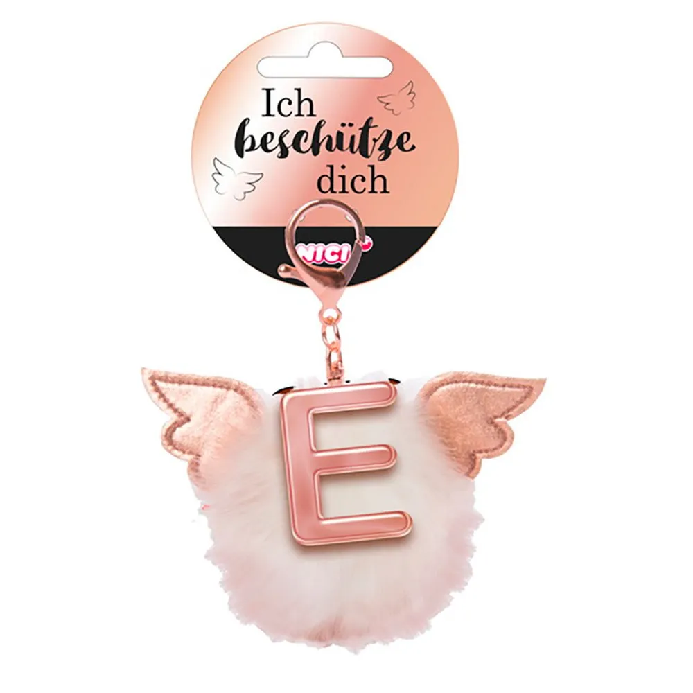 The charming new pendants from NICI are called Angel PomPom. Available in elegant metallic tones and rose-gold accents, the key rings also come in different letters. So there is sure to be the right Angel PomPom for everyone, as a little guardian angel! The bag pendant with the letter E is a cuddly talisman. With the inscription ´I protect you´ and the rose-golden little wings it is a real protective bobble. With the help of the small carabiner you can easily attach the pendant with the letter E almost anywhere.