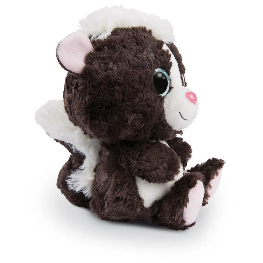 Black-and-white fluffy fur,cuddly facial expression,big blue-glittering eyes. This is our Skunk Suppi from the GLUBSCHIS! With his fuzzy tuft of hair on his head he is a cheeky friend and a great cuddly toy.