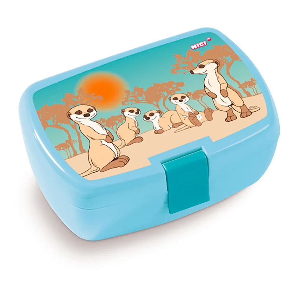 The light blue lunch box with the NICI meerkat family on it really whets the appetite for the breaktime bread. The box is closed with a wide snap closure. This way, even little hands can easily close the box.